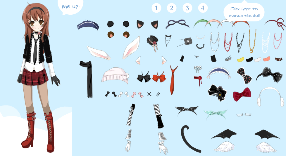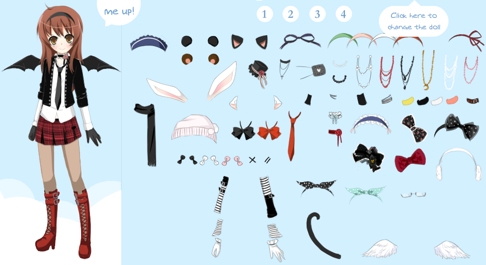・右上の「Click here to change the doll」クリック後に表示されるアイコンをクリックすると、選択可能項目が表示される